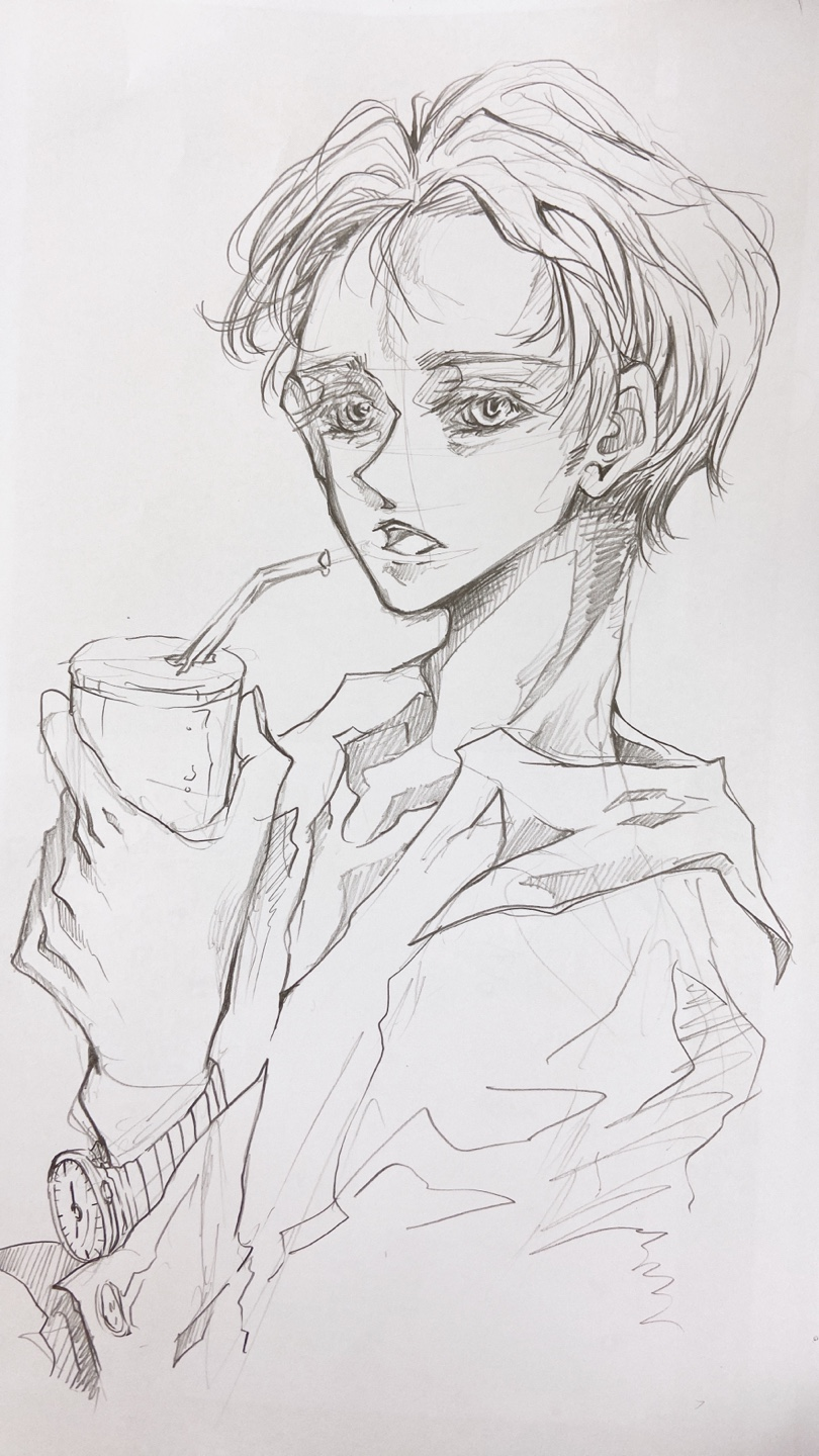 머리 넘긴 것만 그리다보니 내린 것도 그리고 싶어짐